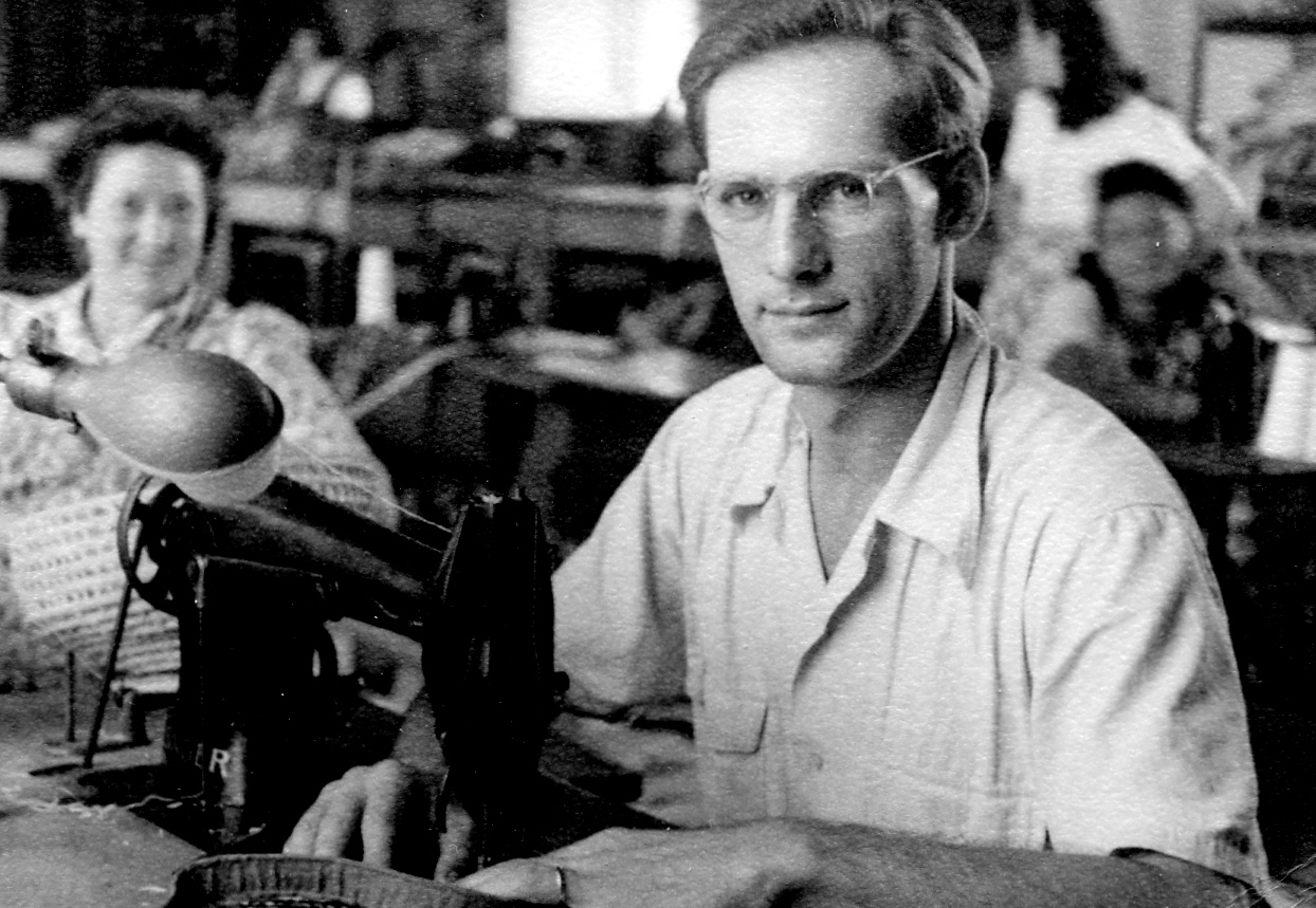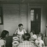 Settlers Else Biller, unknown, Susi and Sonja Topf, unknown, unknown, Kurt Wellisch, Ralph and Anita Klein; standing: Erich Klein